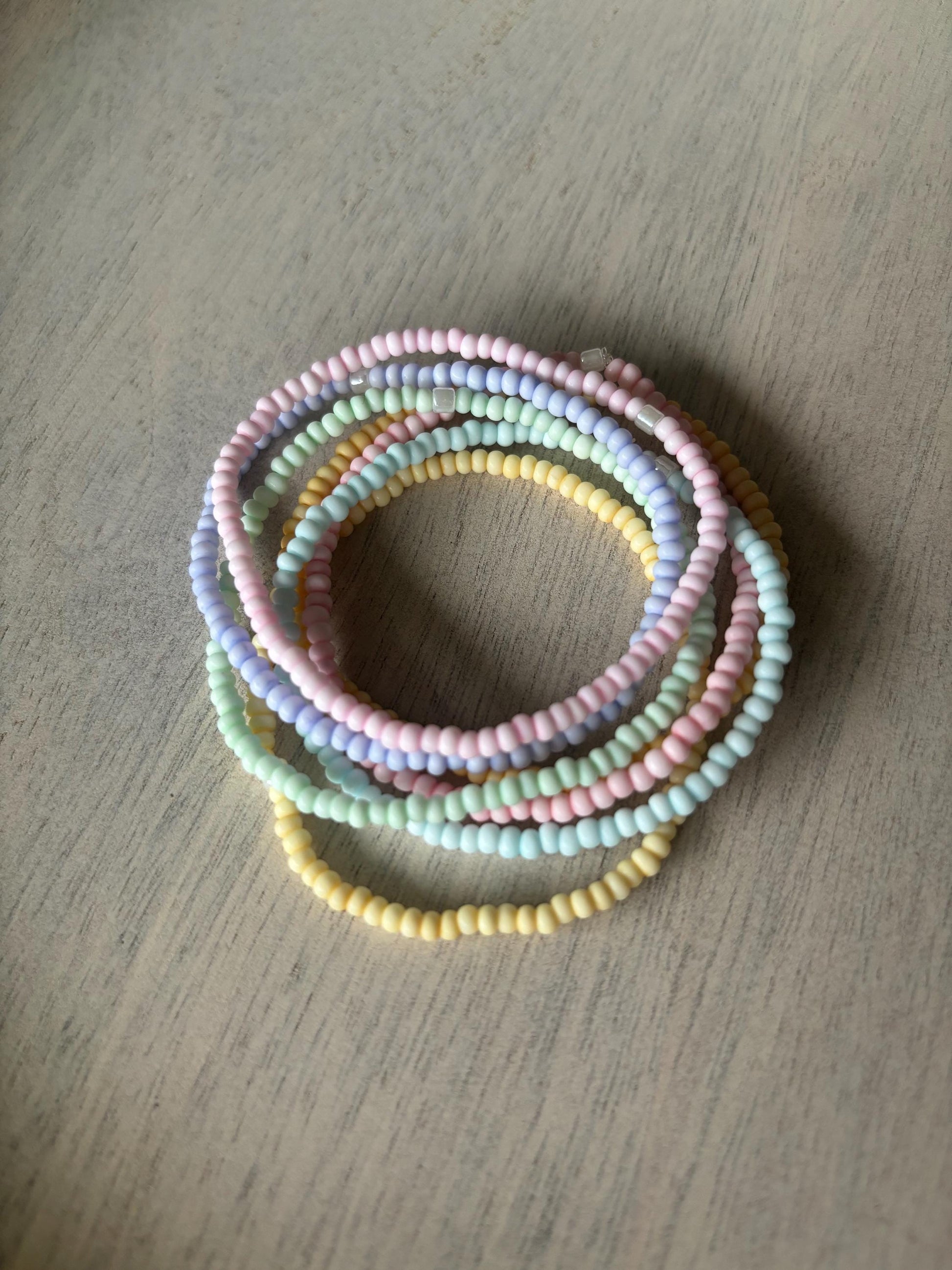 Listing is for stack of 7 macaroon bead bracelets. Custom orders welcome, send me a message with your request!