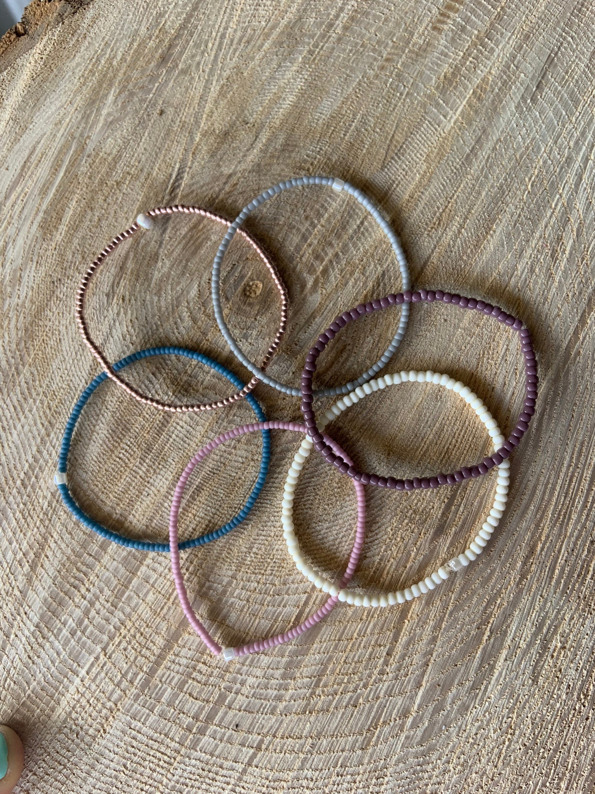 Listing is for stack of 6 seed bead bracelets. Custom orders welcome, send me a message with your request!
